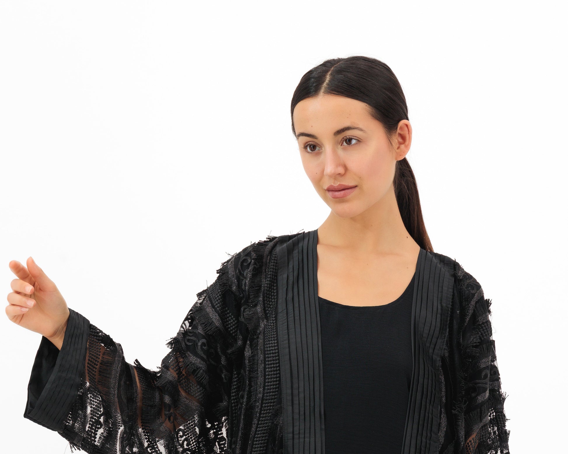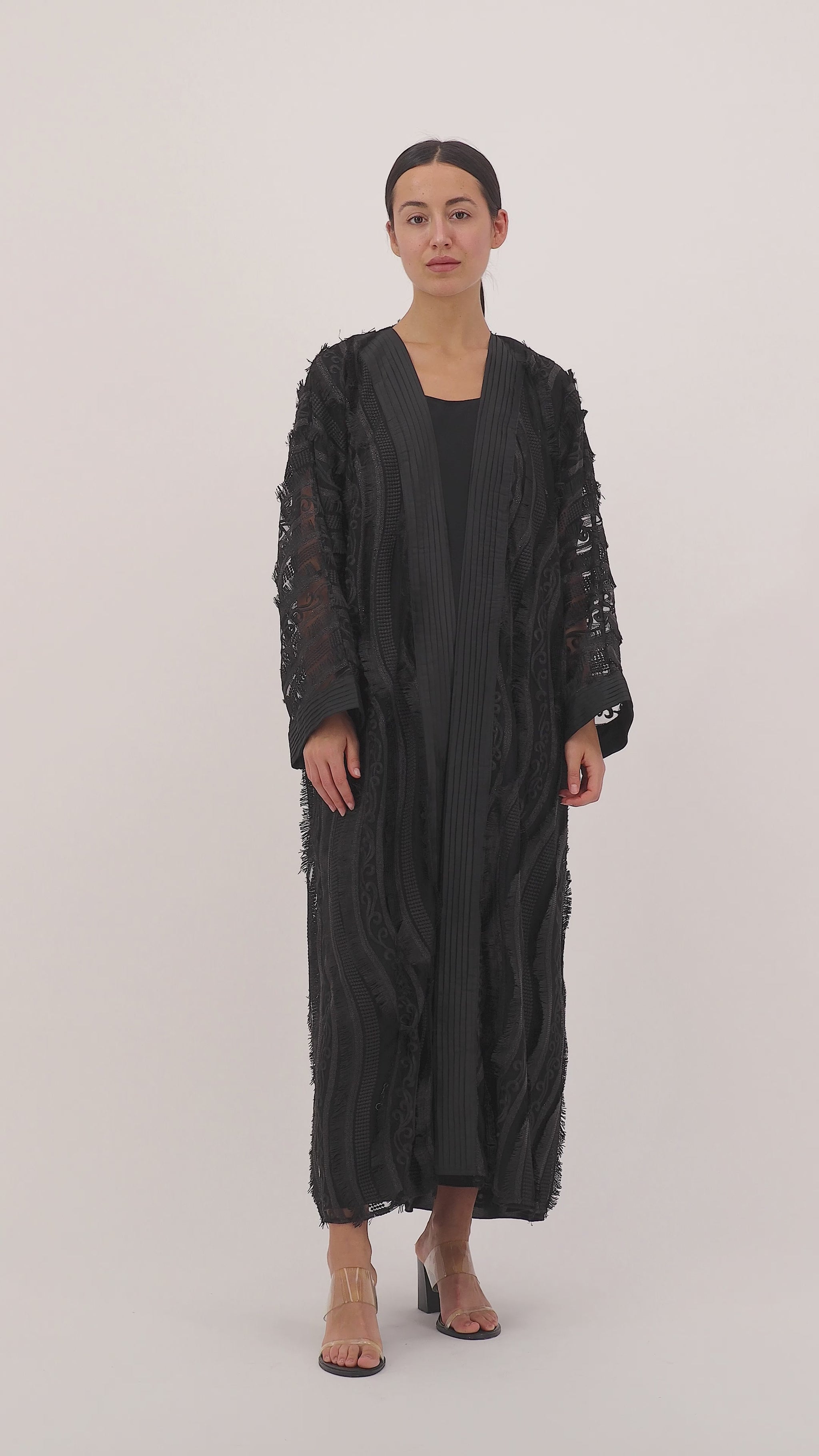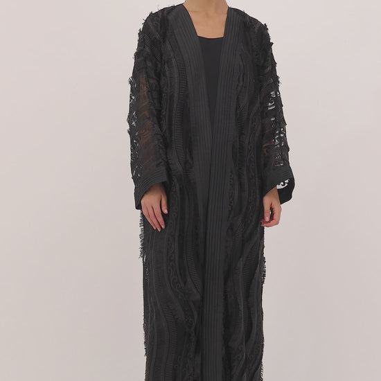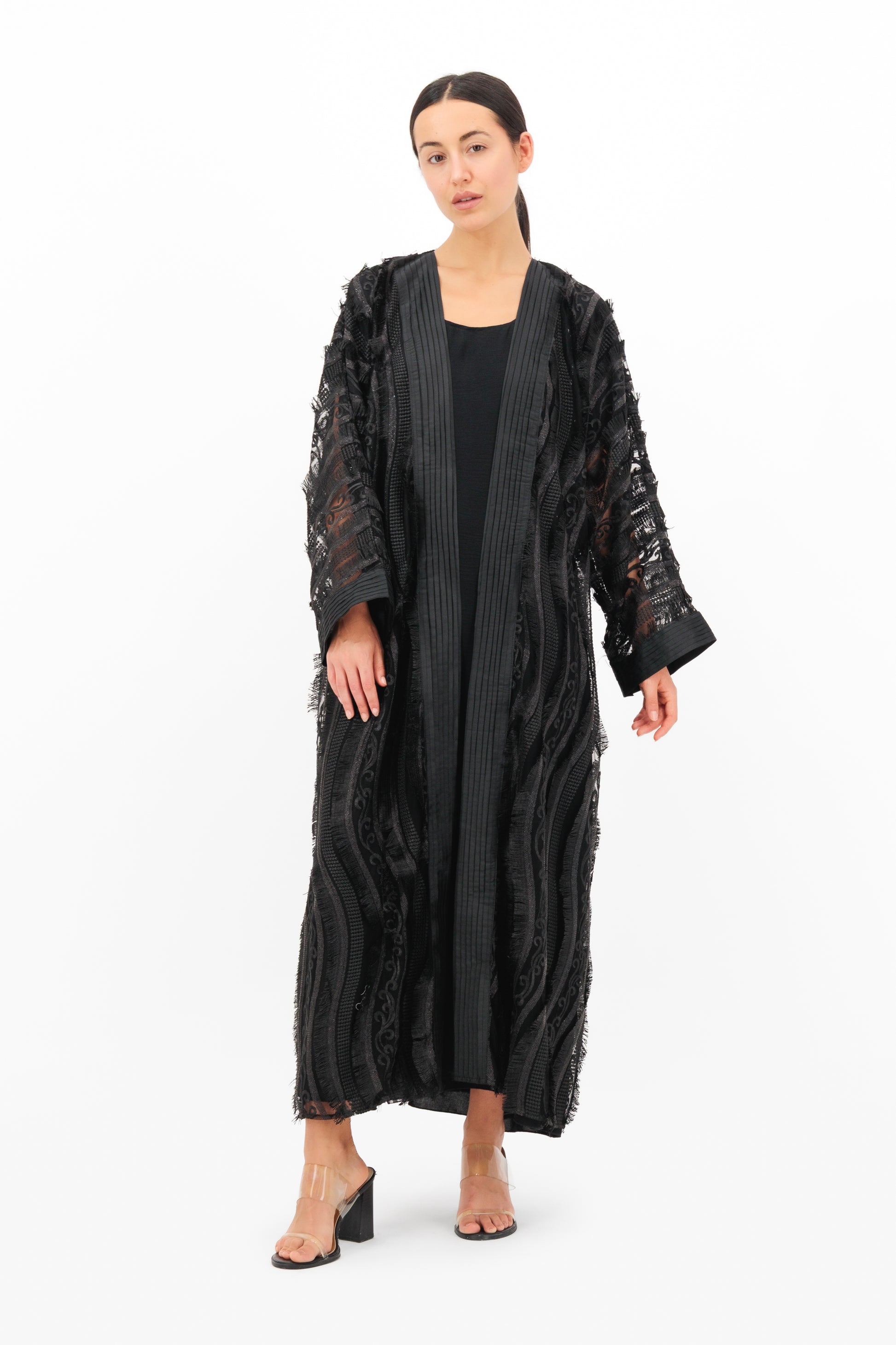 Description and Style : Experience unparalleled elegance with this breathtaking abaya, masterfully crafted from exquisite French Lace. The rich black silhouette comes alive with intricate textures and captivating patterns, offering a sophisticated depth and luxurious feel. A true statement piece for those who appreciate timeless artistry and refined glamour."